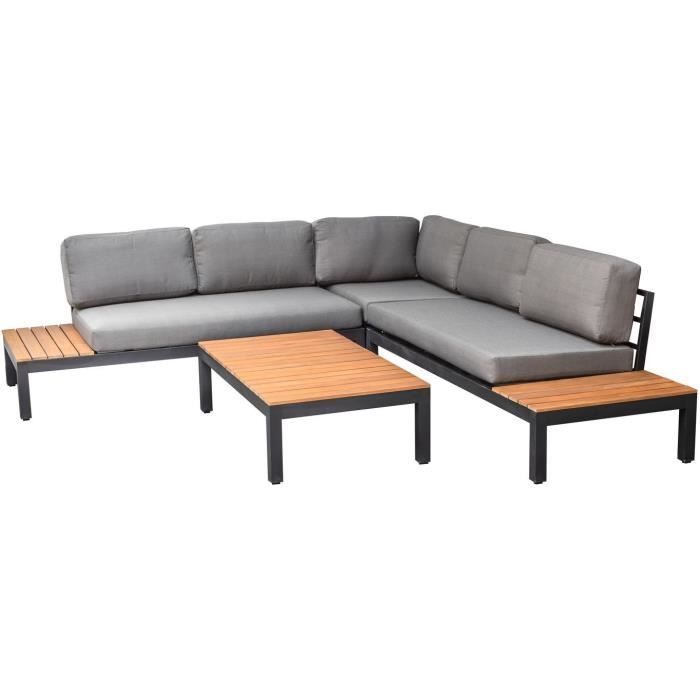 75 cm chaises avec accoudoirs lxh. 499 99 416 66 ht. Bois d acacia certifié fsc exploitation durable des forêts. Aluxe salon de jardin en bois d acacia et pieds en aluminium canapé d angle et une table basse salon de jardin avec un canapé d angle et une table basse en bois d acacia et pieds en aluminium.
